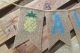Pennants measure approximately 4" x 6" each and are strung on natural twine.