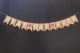 Pennants measure approximately 4" x 6" each and are strung on natural twine.