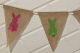 As colorful as a bowl of jelly beans or a basket of dyed Easter eggs, these cute little bunnies will add the perfect bit of whimsy for your Easter celebration. Pennants are adjustable so you can space them according to your space. With proper storage this banner should last many holiday seasons. Store in a zip lock bag to protect it against mildew and moisture.