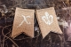 Pennants measure approximately 3" x 4" each and are strung on natural twine.