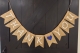 Pennants measure approximately 4" x 6" each and are strung on natural twine.