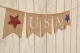 Our shabby chic "USA" banner is perfect for your July 4th Americana rustic decor. As shown the banner features natural burlap pennants flanked by stars in rustic burgundy red and dark blue.