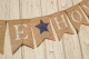 This shabby chic "Welcome Home" banner is perfect for homecoming celebrations and parties. Banner features natural burlap pennants with blue center star or choose another from our list of graphics.